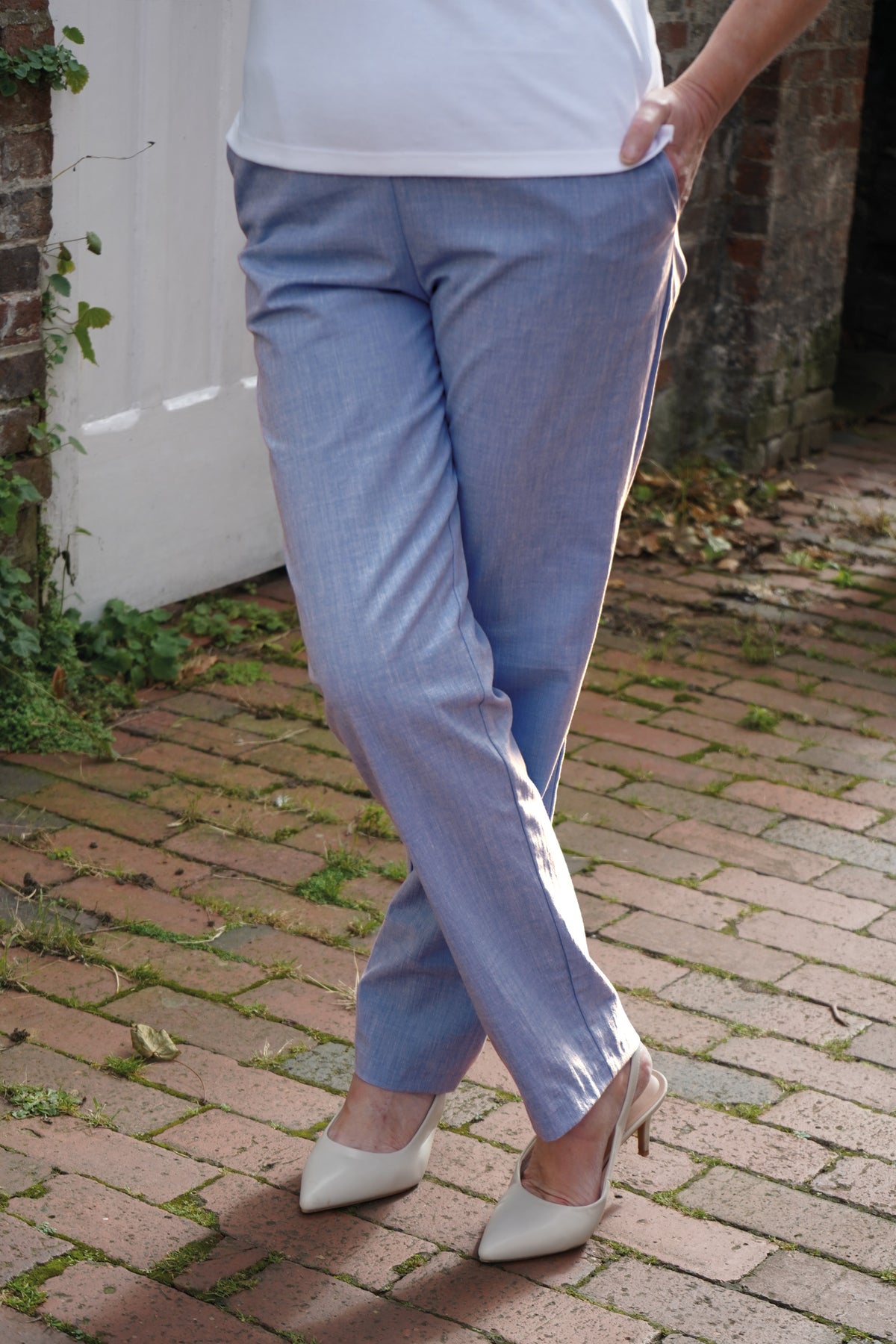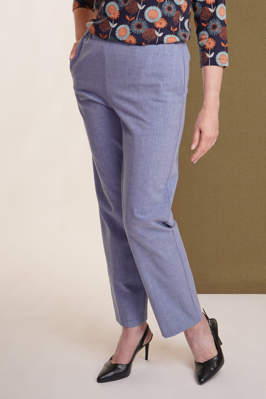 A gorgeous summer weight trouser, lovingly made to order by our team of seamstresses at Bourne Mill. Features an easy-fit, flat front elasticated waistband and two side pockets, these wear effortlessly with any t-shirt or top from your existing wardrobe to achieve a relaxed seasonal look. Machine washable at 30. 60% polyester, 40% cotton.