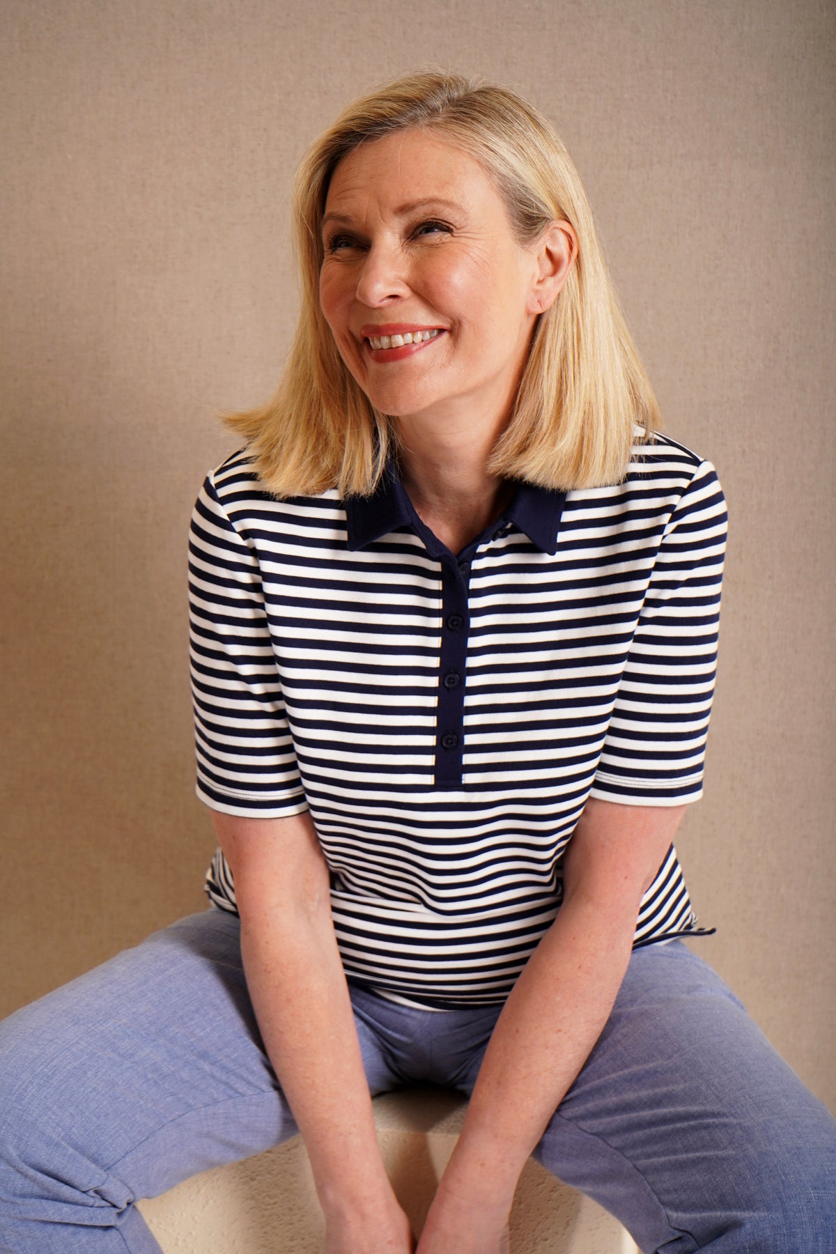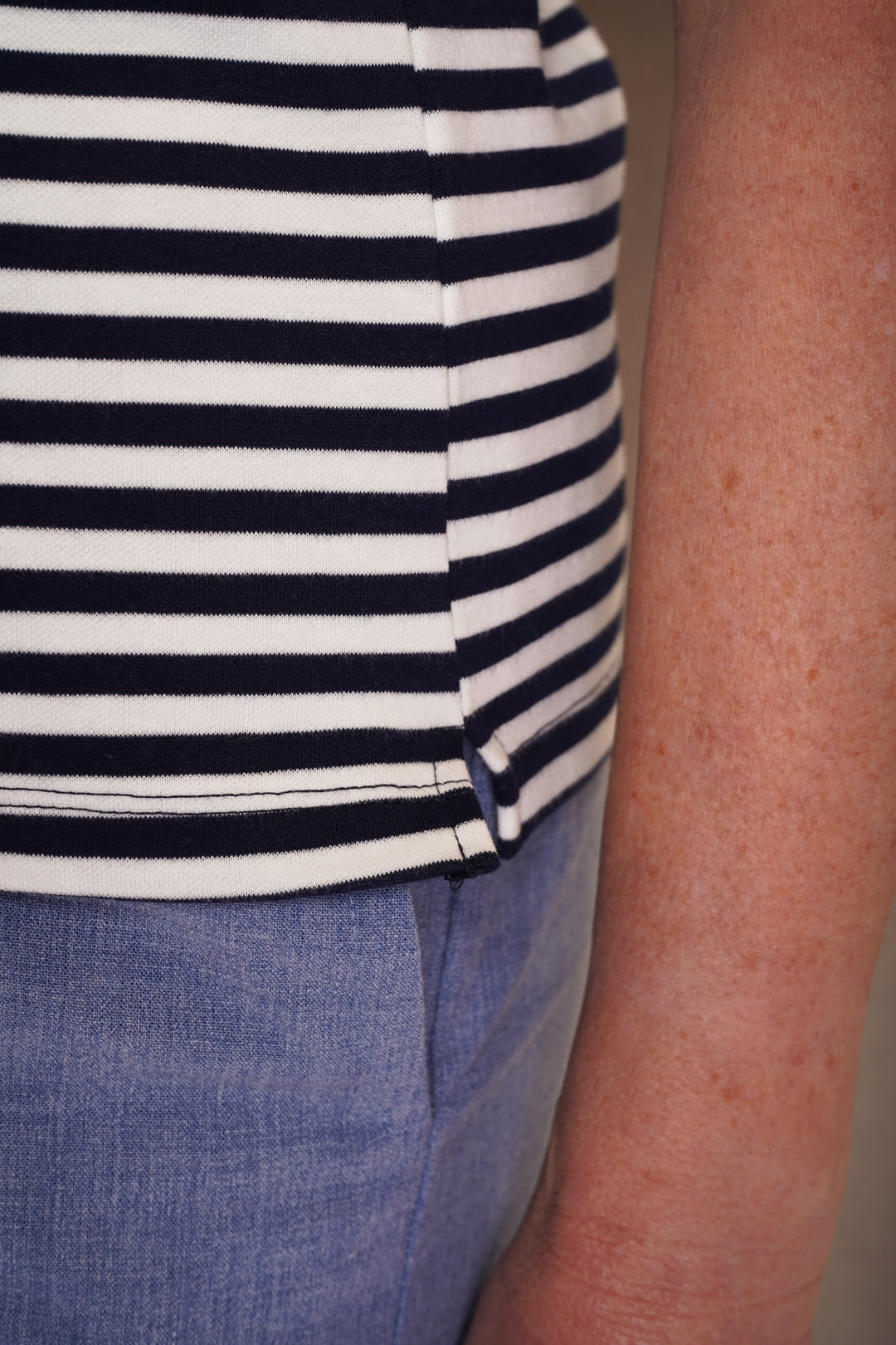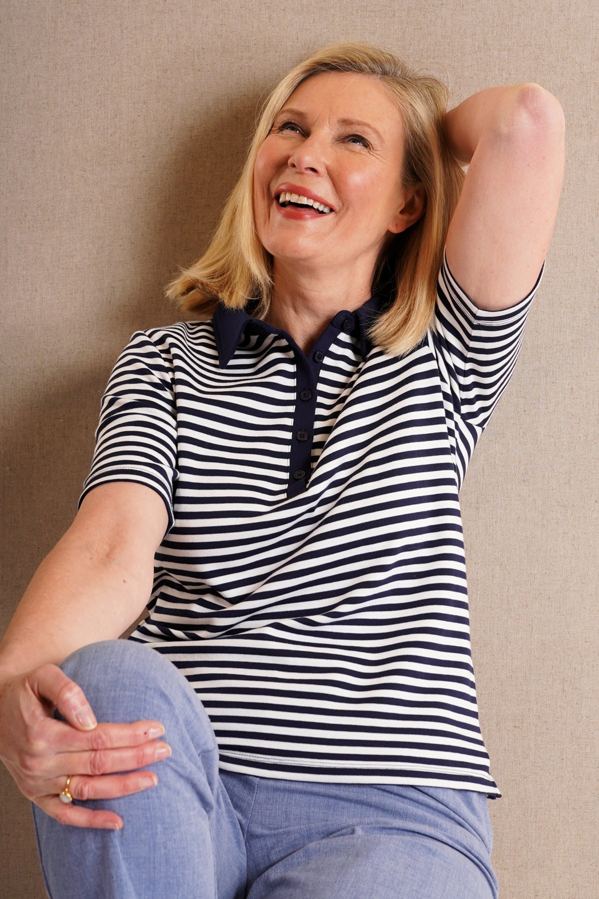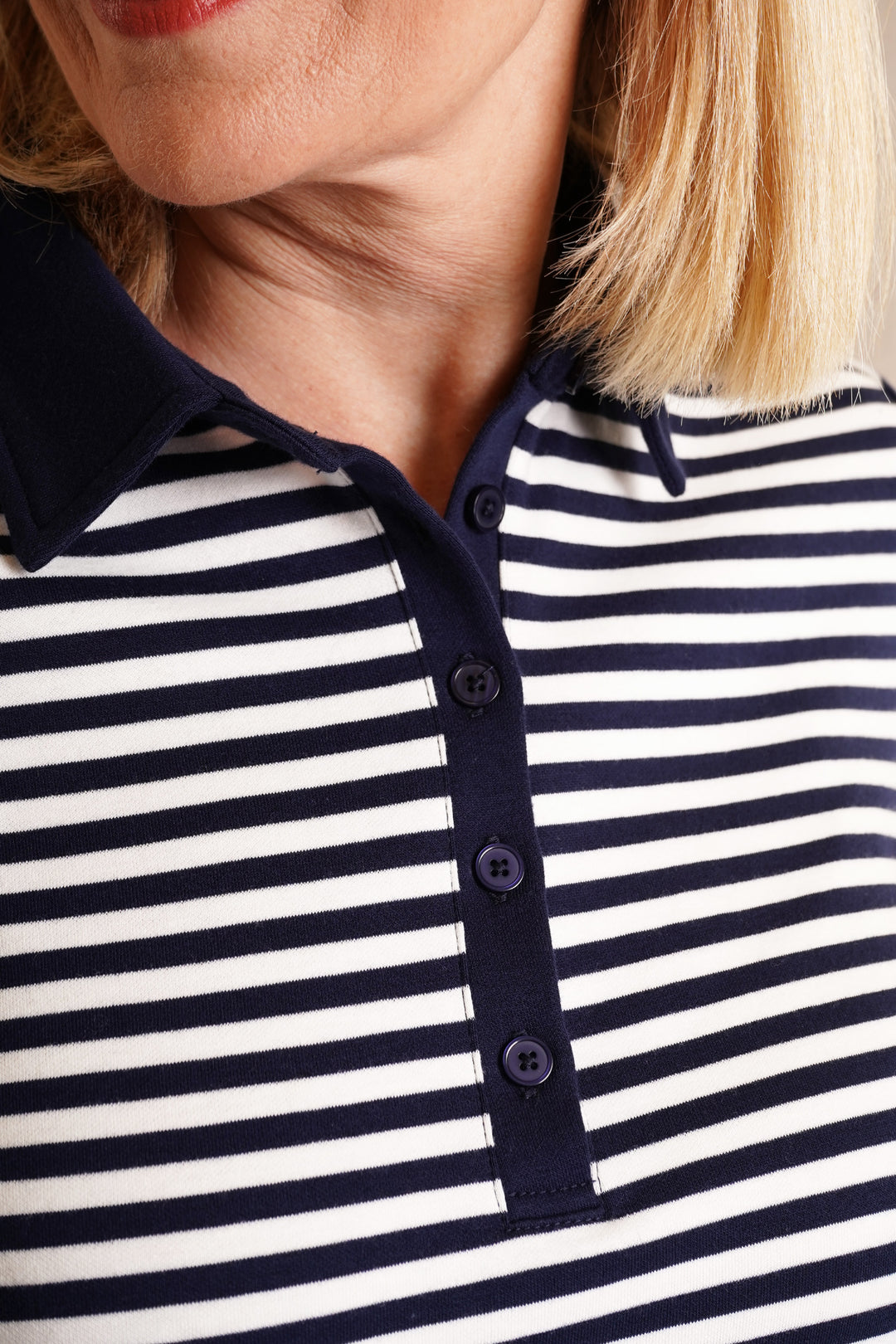 Look sharp and feel comfortable with our Stripe Polo Top! Made from soft and stretchy cotton fabric, this smartly designed top features a four-button fastening and short sleeves for a great summer look. The contrasting collar adds a touch of style to this must-have summer piece. Length 23". 100% cotton.