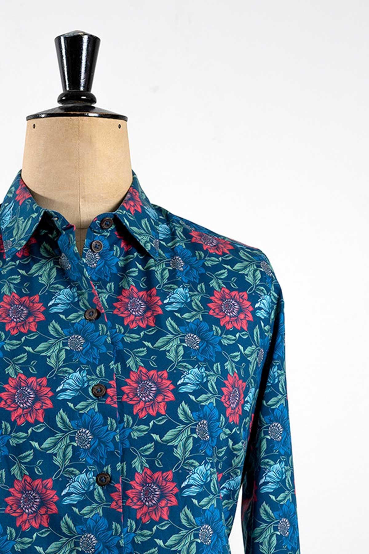 Bursting with colour, this striking floral print blouse by Betsy will brighten up your seasonal wardrobe. Featuring a classic collar, long sleeves, a front button closure and a back yoke and pleat. Bust darts for semi-shaping and flattering fit, finished with a gently rounded hem. Back length from 27 inches. Machine washable. 100% cotton.