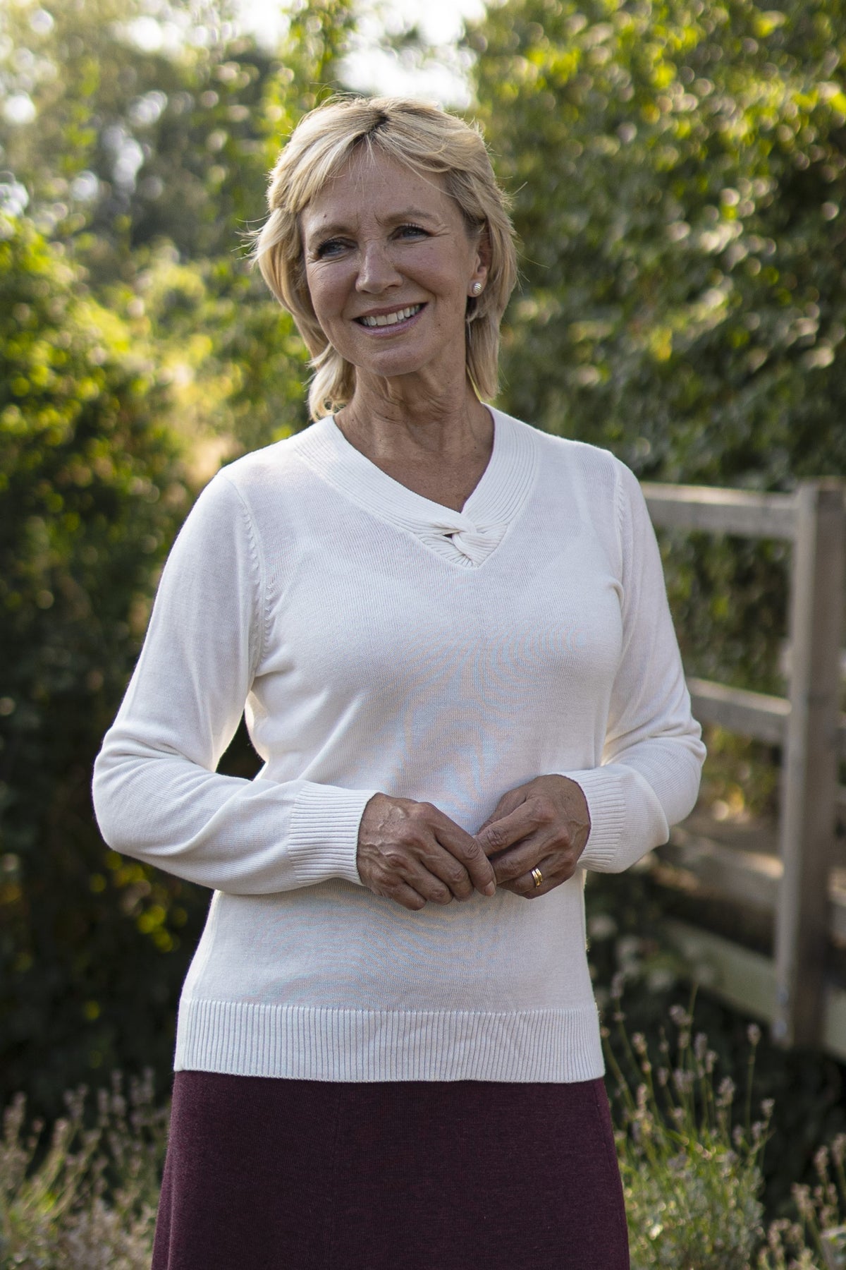 Add a touch of elegance to any outfit, a new design from Poppy. Crafted from a soft wool blend, the subtle twist in the V-neckline is the perfect feature to add a stylish look to daytime outfits. Machine washable at 30 degrees. 54% polyester, 20% nylon, 20% acrylic, 6% wool.