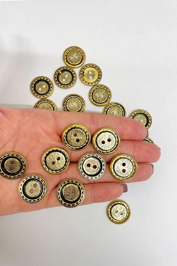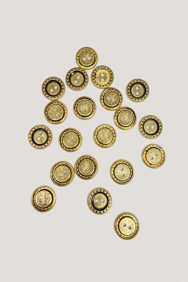 Gorgeous gold metallic buttons, light weight plastic. Perfect for crafts or adding to clothing. Pack of 20 buttons.