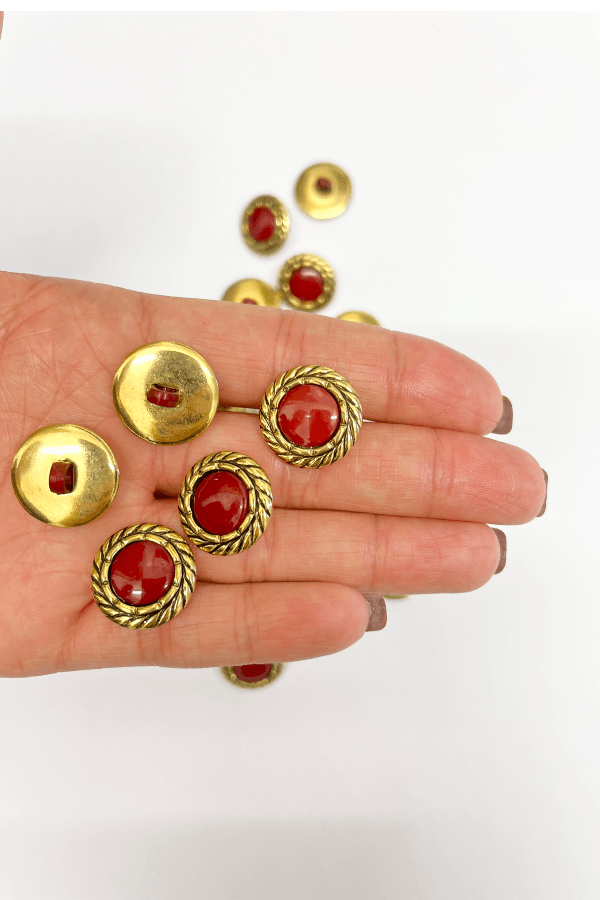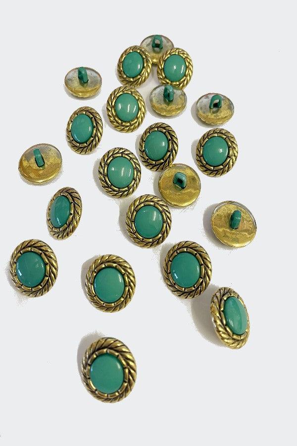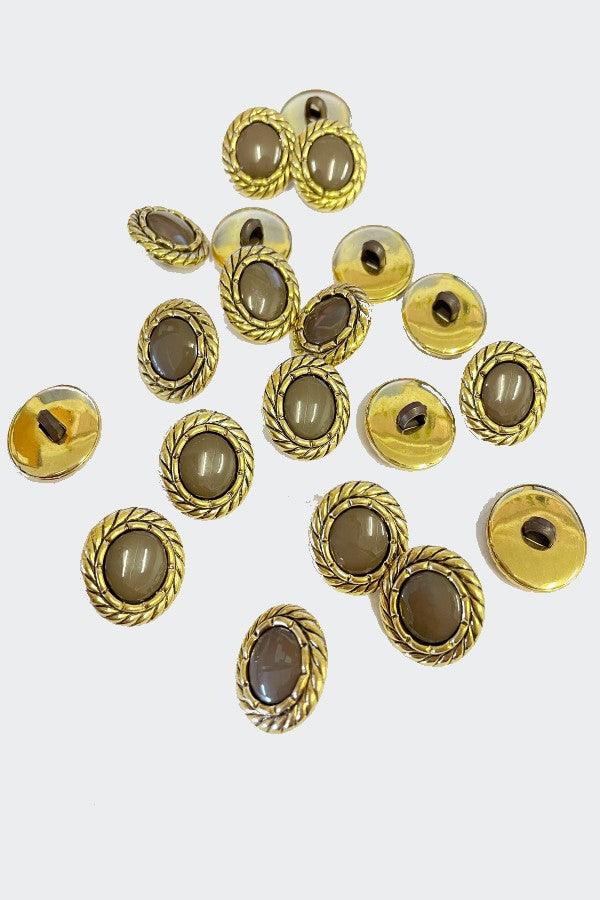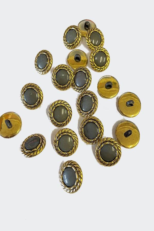Gorgeous gold buttons, light weight plastic. Perfect for crafts or adding to clothing. Pack of 20 buttons.