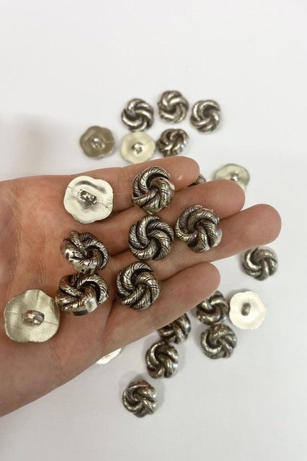Gorgeous silver knot buttons, light weight plastic. Perfect for crafts or adding to clothing. Pack of 20 buttons.