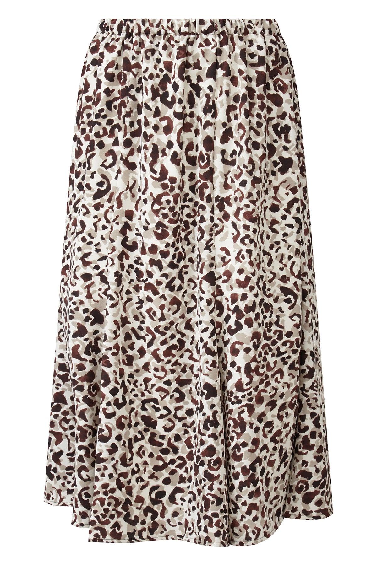 Elegant six panel skirt matches the Jasper Top (A660). Stunning outfit will grace any occasion. Silky handle animal print styled with fluted panels, easy fit elasticated waist and full lining. Unique to C&W, made in our work rooms in Kent. Machine washable. 100% polyester.