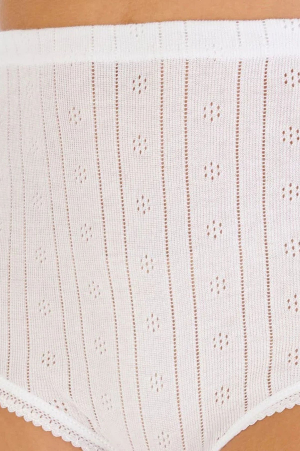 These 100% cotton briefs feature an elasticated waistband and delicate pointelle knit with lace-trimmed leg holes for a refined look. Seam-free and lightweight, they offer exceptional comfort, flexibility, and durability—perfect for everyday wear.