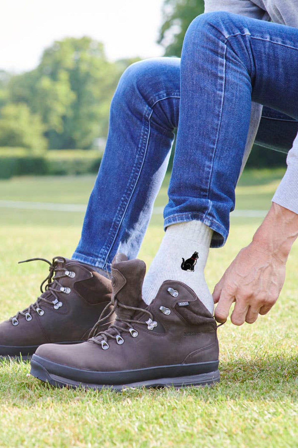 Knitted in a soft wool blend and finished with an embroidered black and white cat on a pale grey sock. A strong gifting item with great appeal for cat lovers. Warm, breathable and gently stretchy for everyday comfort. Ideal for impulse gifting, till-point displays and cat-themed merchandising bays. Unisex. One size fits women’s UK 3 to men’s UK 12. Made from: 30% wool, 29% polyester, 21% acrylic, 17% nylon, 3% spandex Care: Machine wash cold with similar colours.