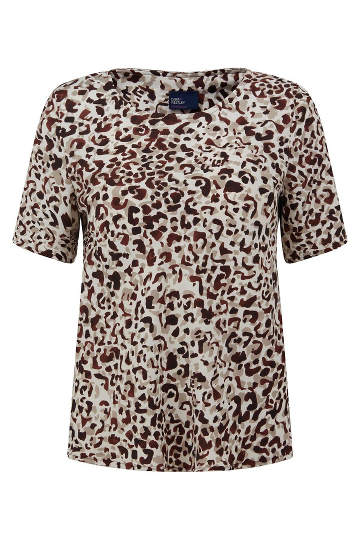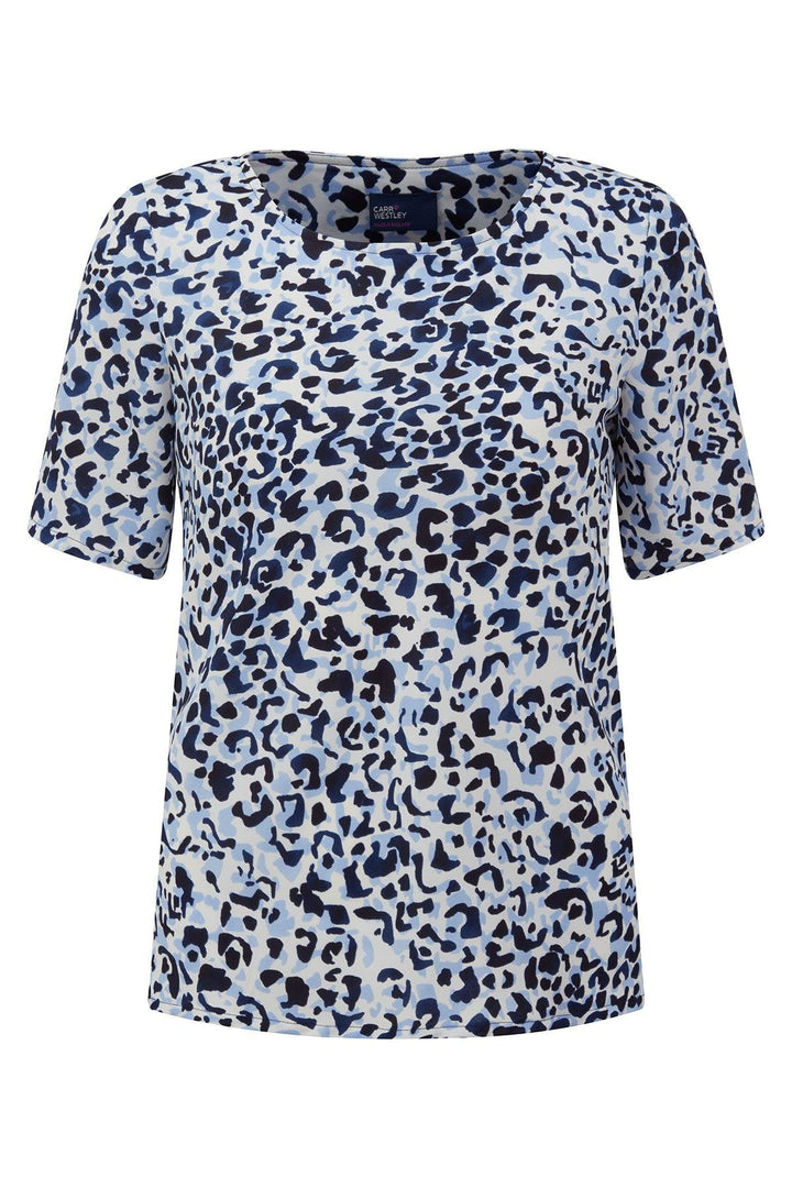 Stylish silky handle top makes a super occasion outfit unique to Carr and Westley. Round neck, short sleeve style slips easily overhead. Side slits for a comfy fit. On trend animal print in stunning blue or coffee colourways. Back length from 25 inches. Machine washable. 100% polyester.