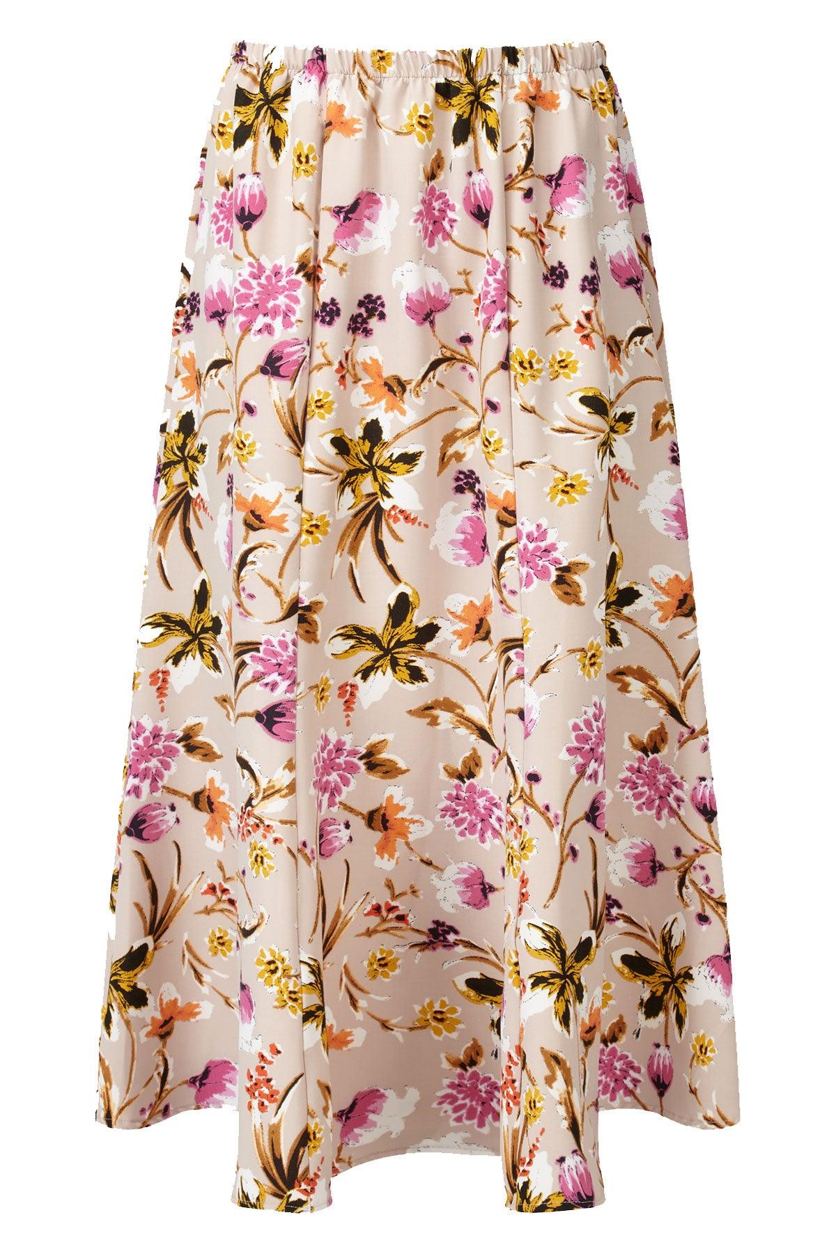 Exclusive easy-care skirt will bring Summer to your doorstep. Floral jersey with a little stretch makes for flattering six panel skirt with elegant fluted panels. Comfy fit stretch waistband. Machine washable. 95% polyester, 5% spandex.