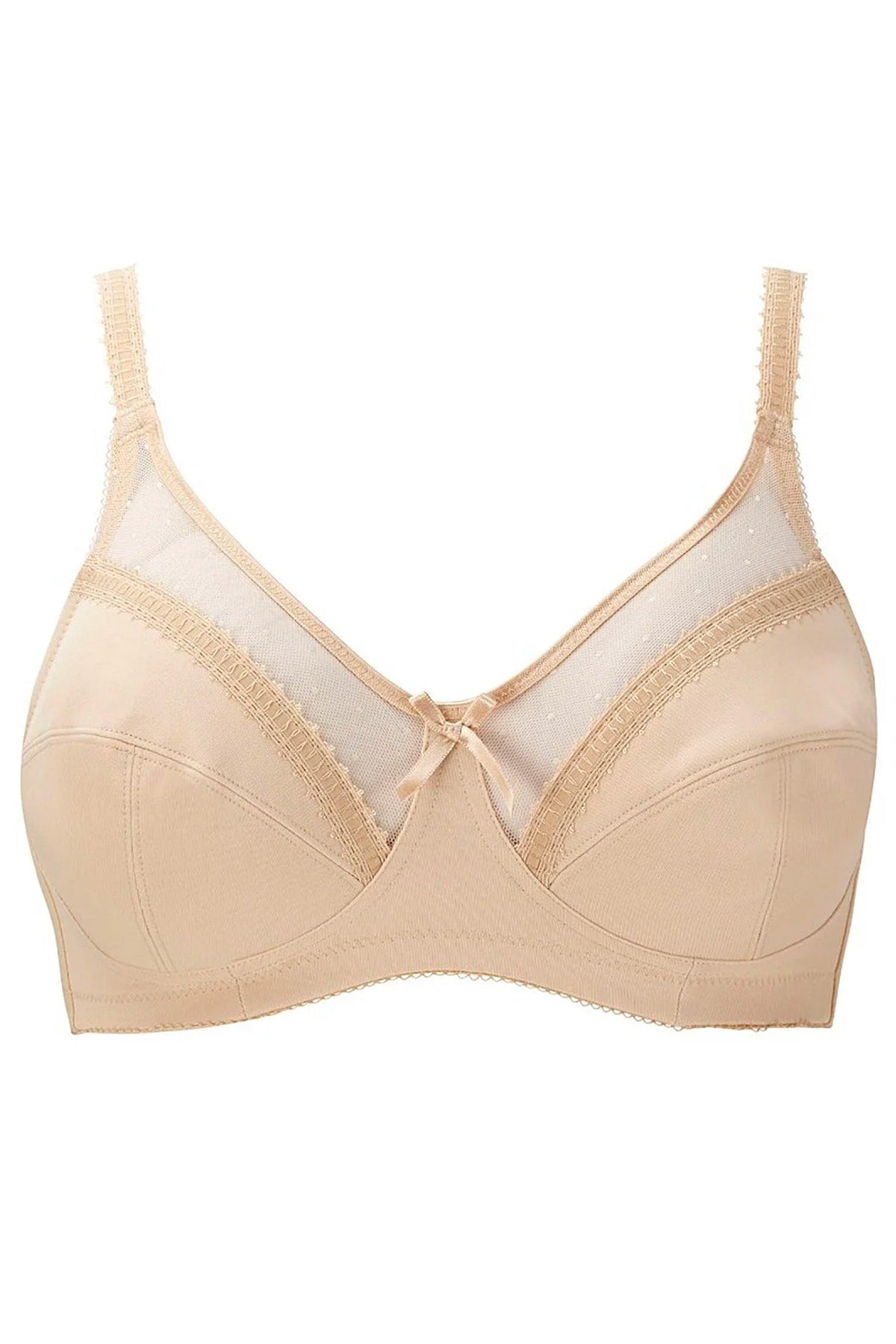 Fantastic, firm support, excellent comfort and a great shape make Charlotte one of our best-selling styles. With mesh top cup for a lighter look and additional side sling in cup sizes F to K (up to KK and L in black) for extra support, Charlotte comes in three essential colours. 50% Polyamide, 38% Cotton, 7% Polyester, 5% Elastane.