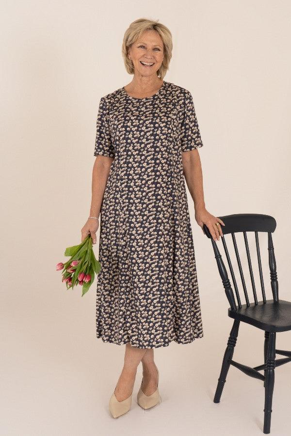 Upgrade your spring to summer wardrobe, with this gorgeous ditsy patterned dress, in a princess cut design. Features short sleeves in an over the head style, a round neckline with a concealed pocket. Machine washable. 100% viscose.