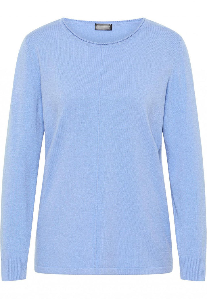 Stylish, finely knitted jumper by Lebek. A perfect basic for your wardrobe this spring, made in a soft comfortable fabric. Featuring long sleeves with a round neckline. Finished with ribbed detailing on the hem and cuffs. Machine washable at 30. 46% Modal, 40% Polyacrylic, 14% Polyamide. Back length from 25”.