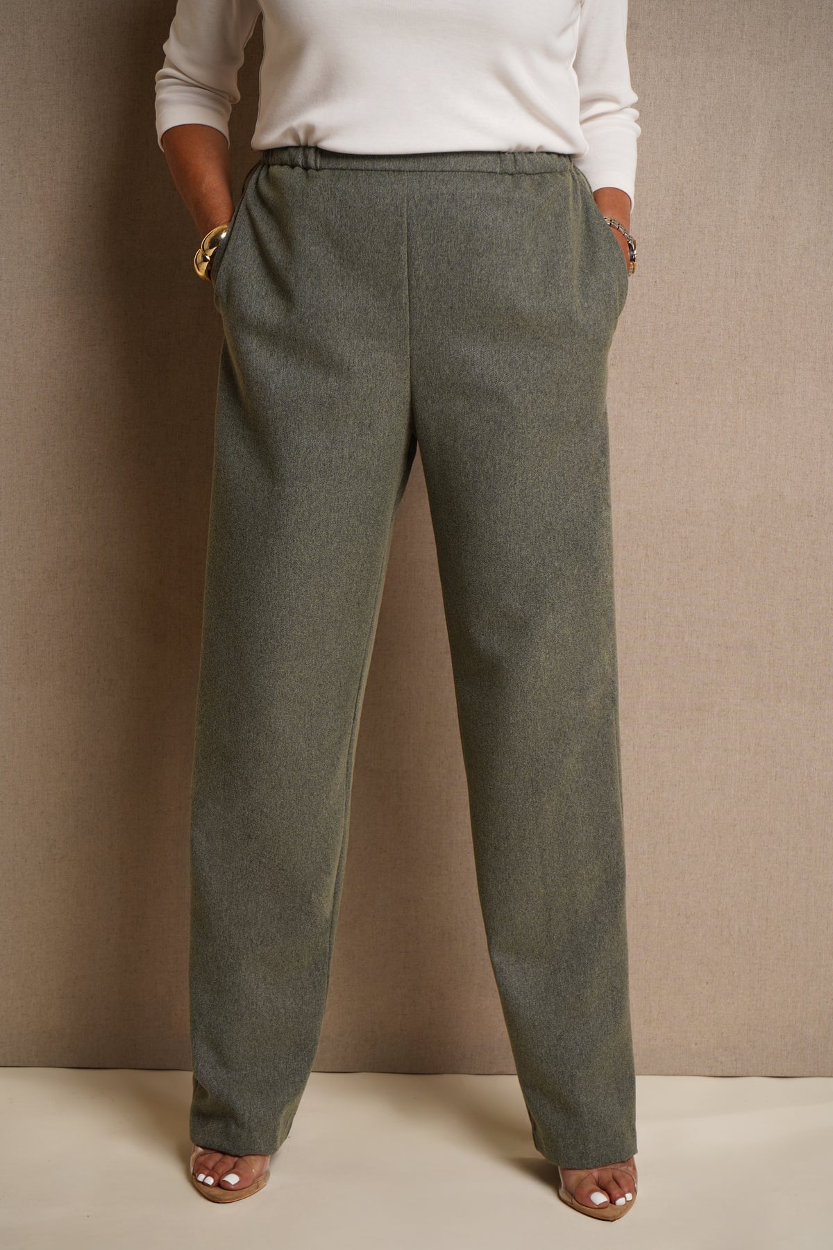 These straight-leg trousers feature a comfortable elasticated waistband and two discreet side pockets, combining practicality with a sleek, smart appearance. Ideal for a polished look that doesn’t compromise on ease, they offer versatile styling options for both professional and refined casual wear. Machine washable at 30 degrees. 45% acrylic, 40% polyester, 15% wool.