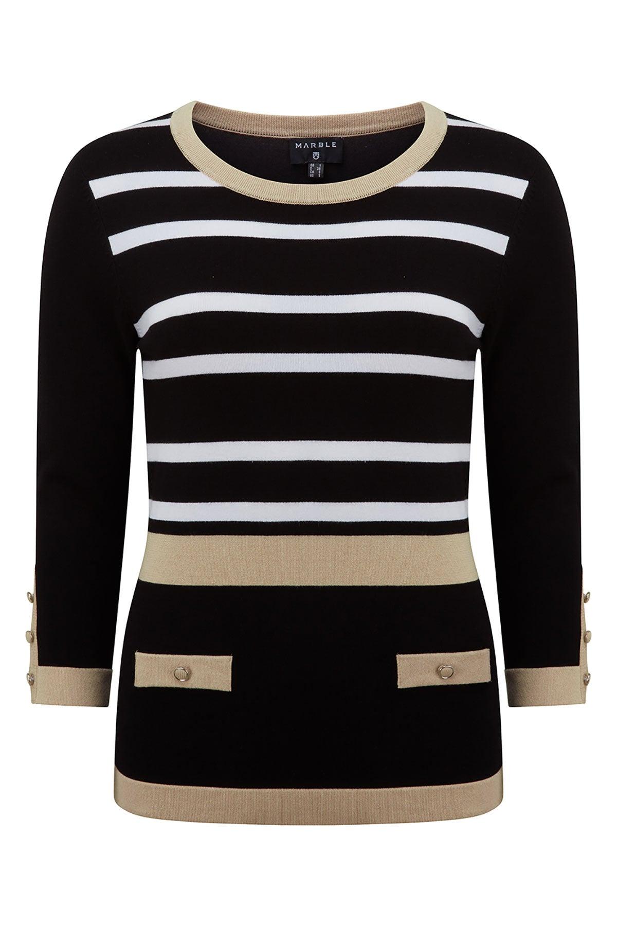 This fabulous jumper by Marble is simple but bursting with details to make you look and feel gorgeous. Created in a fine knit, the button detail on the sleeves and faux pockets keep you looking stylish. Back length from 25". Machine Washable at 30. 72% viscose, 28% polyamide.