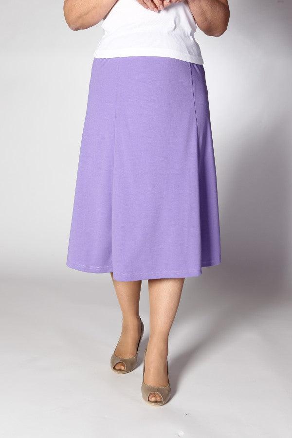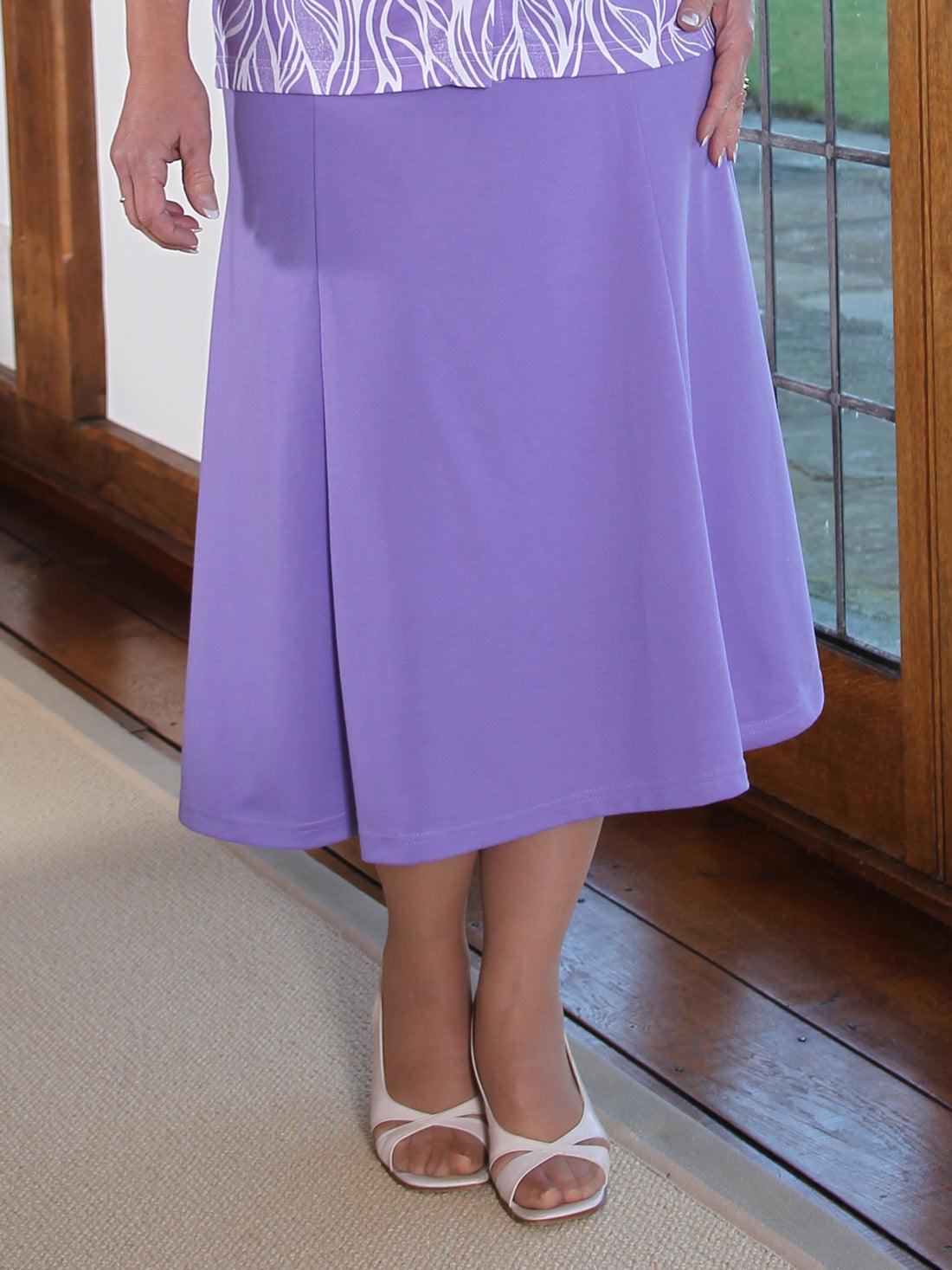 Chartwell Skirt by Poppy. Versatile cotton-mix, six panel jersey skirt from classic ladieswear designer, Poppy. Features easy-fit stretch waist for comfort. Mixes and matches perfectly with all Poppy tops. Machine washable. 65% polyester, 35% cotton.