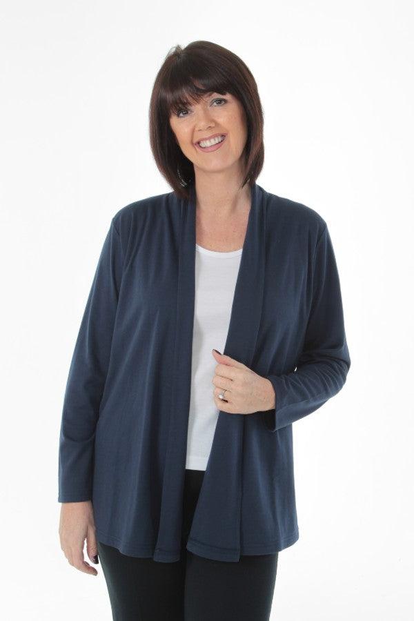 Waterfall style edge to edge, versatile jersey cardigan by Poppy. An easy over layer to mix and match with the New Forest Poppy print and plain t-shirts, dresses and tops for a modern flattering line. Machine washable.
