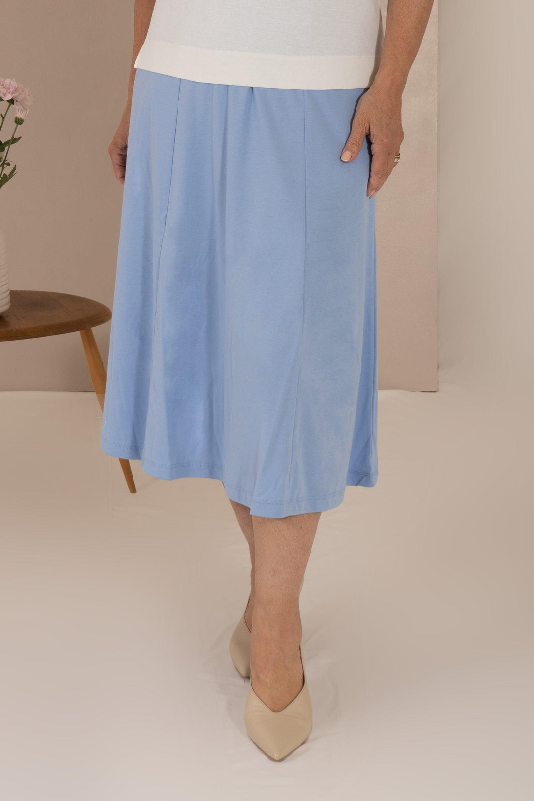 An essential plain everyday skirt, in new seasonal colours. Made from a beautifully soft fabric, the six-panelled skirt features concealed dual side pockets and a fully elasticated waistband that offers comfort throughout the day. Machine washable at 30. 65% polyester, 35% cotton. Made by Poppy.