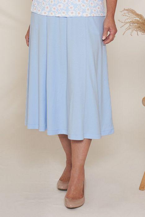 An essential plain everyday skirt, in new seasonal colours. Made from a beautifully soft fabric, the six-panelled skirt features concealed dual side pockets and a fully elasticated waistband that offers comfort throughout the day. 65% polyester, 35% cotton. Made by Poppy. Sizes 10 to 26. Lengths 27", 29", 32"