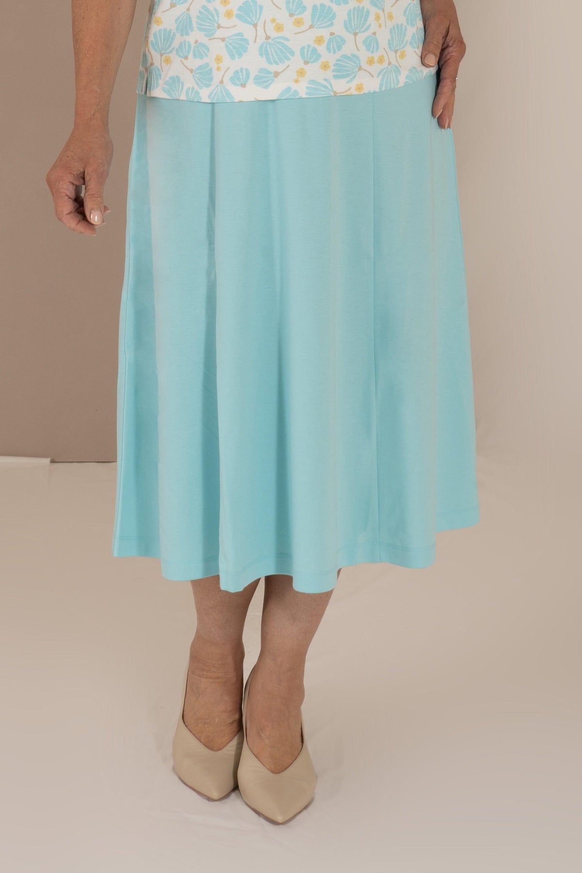 This plain jersey six-panelled skirt by Poppy is simple yet super-stylish. Complete with fully elasticated waist, this skirt slides on easily and promises comfort that lasts throughout the day. Pair with a plain or patterned top for a charming, customised look. Machine washable at 30. 65% polyester, 35% cotton.