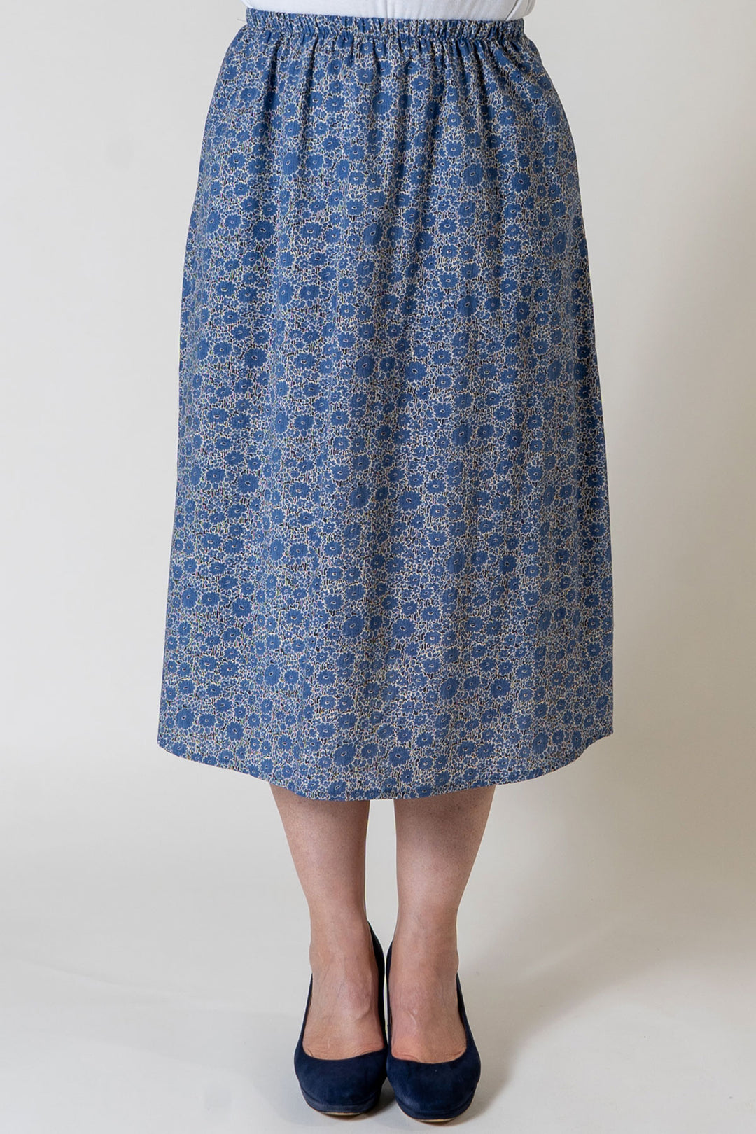 A classic Carr & Westley pure cotton, floral print skirt. Designed and made in England, it features an easy-fit stretch waist and handy concealed side pockets, cut in a simple two panel design. 100% cotton.