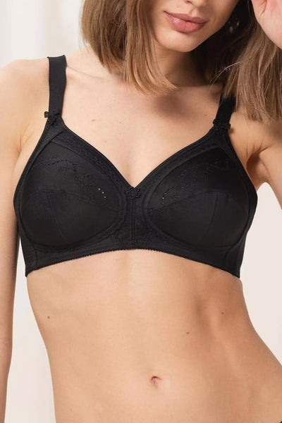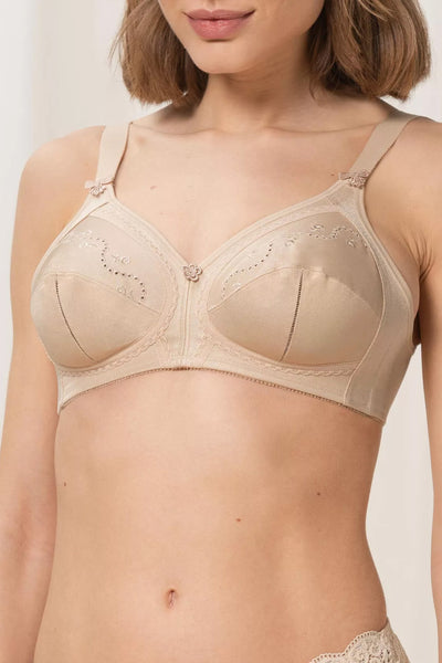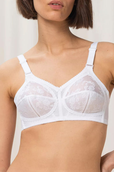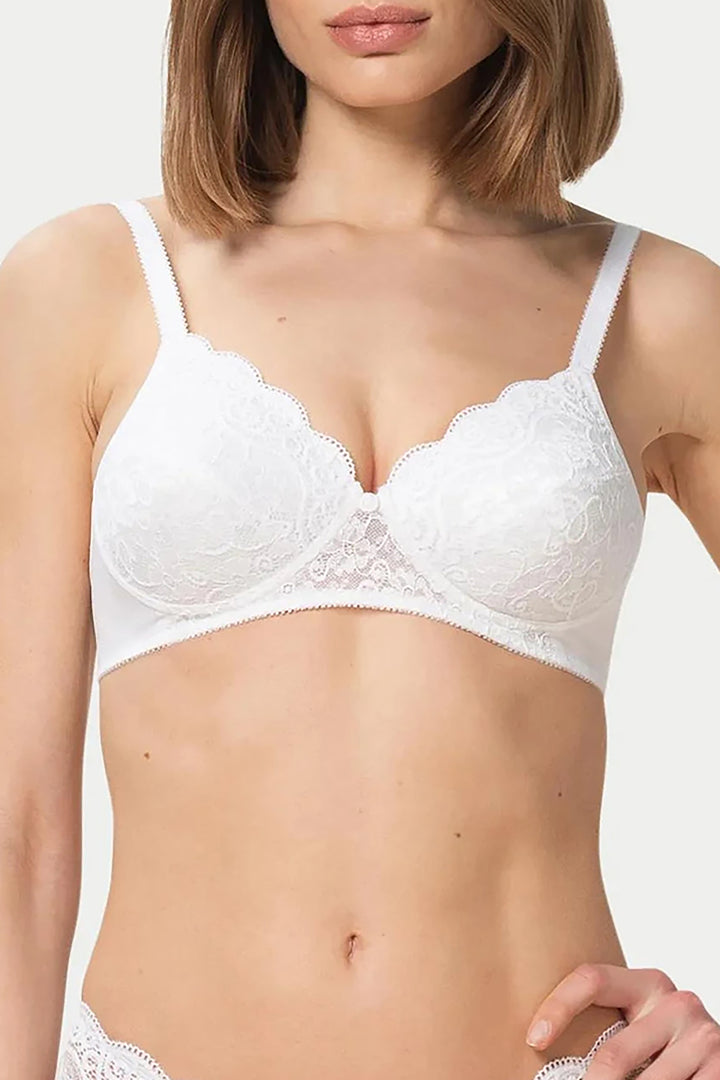 Amourette Padded Bra by Triumph. Pretty Amourette non-wire bra with softly padded cups offering a flattering fit. Floral embroidered overlay. You'll adore your bust in this decorative Triumph bra covered in a soft, stretch lace for an ultra feminine look. This padded bra is made of elastic materials to give you the perfect fit, even in larger cups sizes. 55% Polyamide, 24% Cotton, 21% Elastane