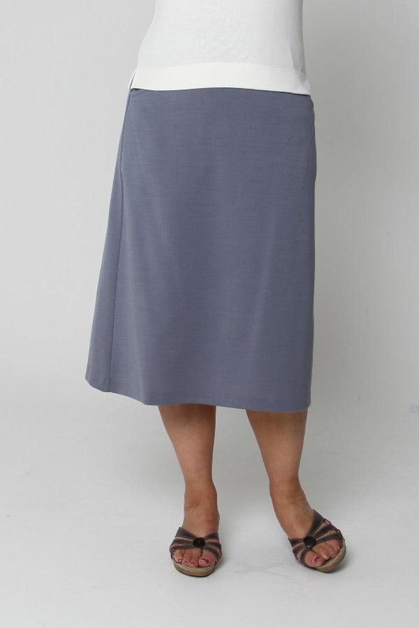 Tudeley Skirt by Carr & Westley. Superior quality wool mix Ponte Roma jersey skirt designed and made in our Kent workrooms. Three panel style with two deep front pockets and easy-fit stretch waistband. Fully lined for comfort. Made to order in our Kent workrooms. 66% acrylic, 28% wool, 6% polyester.